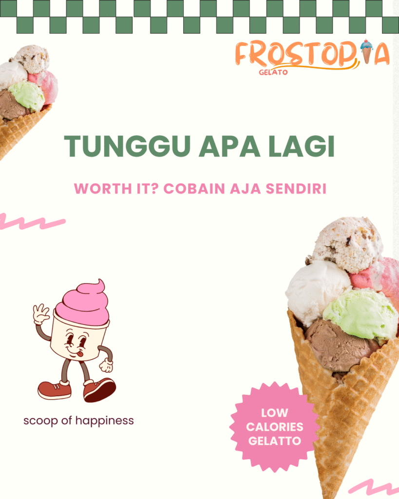 Keunggulan lainnya adalah kandungan gula yang lebih rendah, yang dapat membantu menjaga kestabilan gula darah. Bagi individu yang sensitif terhadap lonjakan gula atau yang tengah mengatur asupan karbohidrat, gelato rendah kalori seperti Frostopia menjadi pilihan dessert yang lebih aman. Ditambah lagi, karena Frostopia umumnya menggunakan bahan alami tanpa tambahan pewarna atau perasa sintetis, produk ini lebih cocok untuk mereka yang memilih gaya hidup bersih dan sehat. Hal ini tentu menjadi nilai tambah bagi konsumen yang tidak hanya mengejar rasa lezat, tetapi juga kualitas bahan yang baik bagi tubuh.